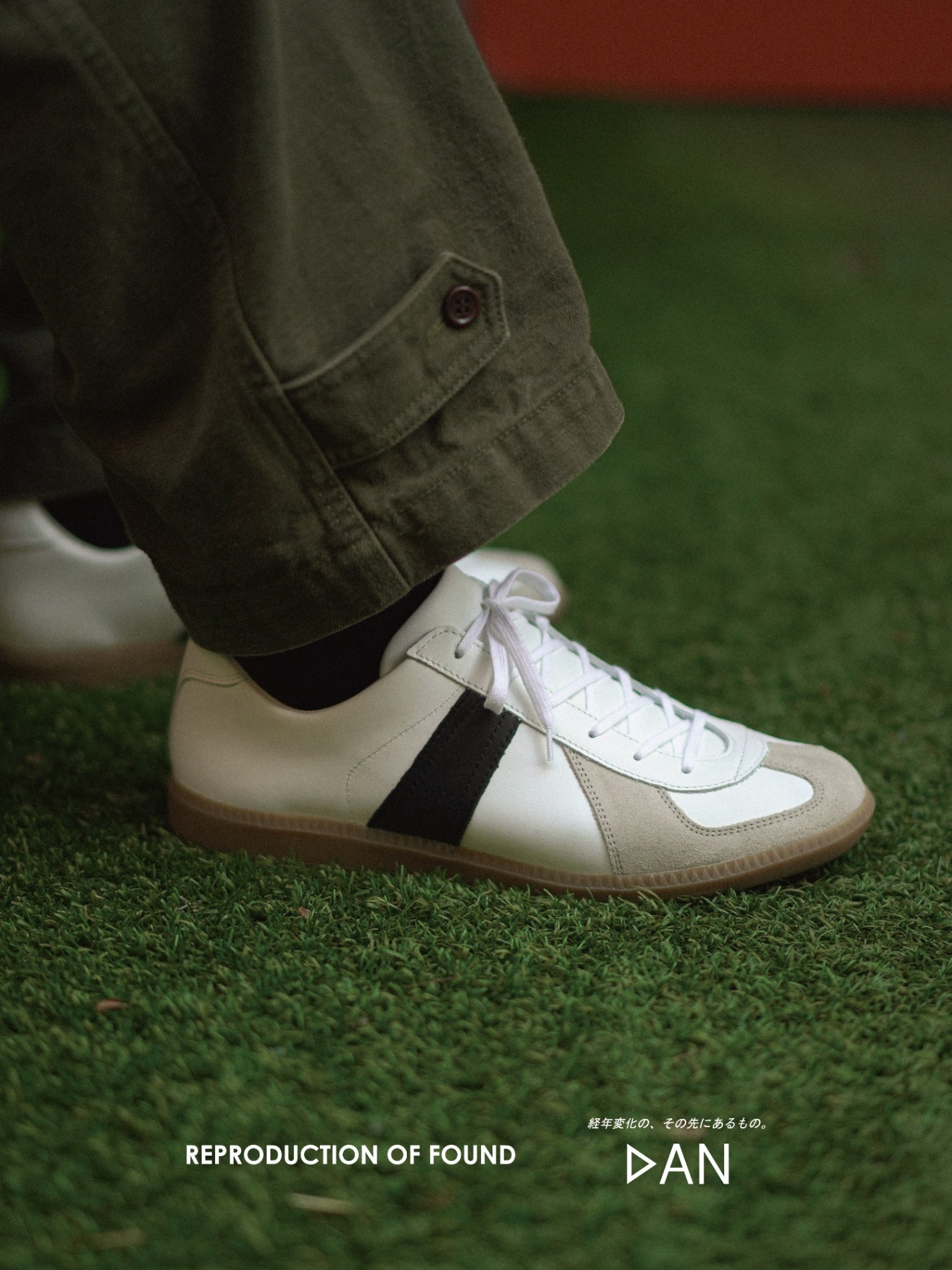 現在様々なブランドからジャーマントレーナーが生み出されていますが、当時の雰囲気を感じることができる本物のジャーマントレーナーは「REPRODUCTION OF FOUND」でしか作れないと思い、今回のコラボモデルの生産を依頼しました。